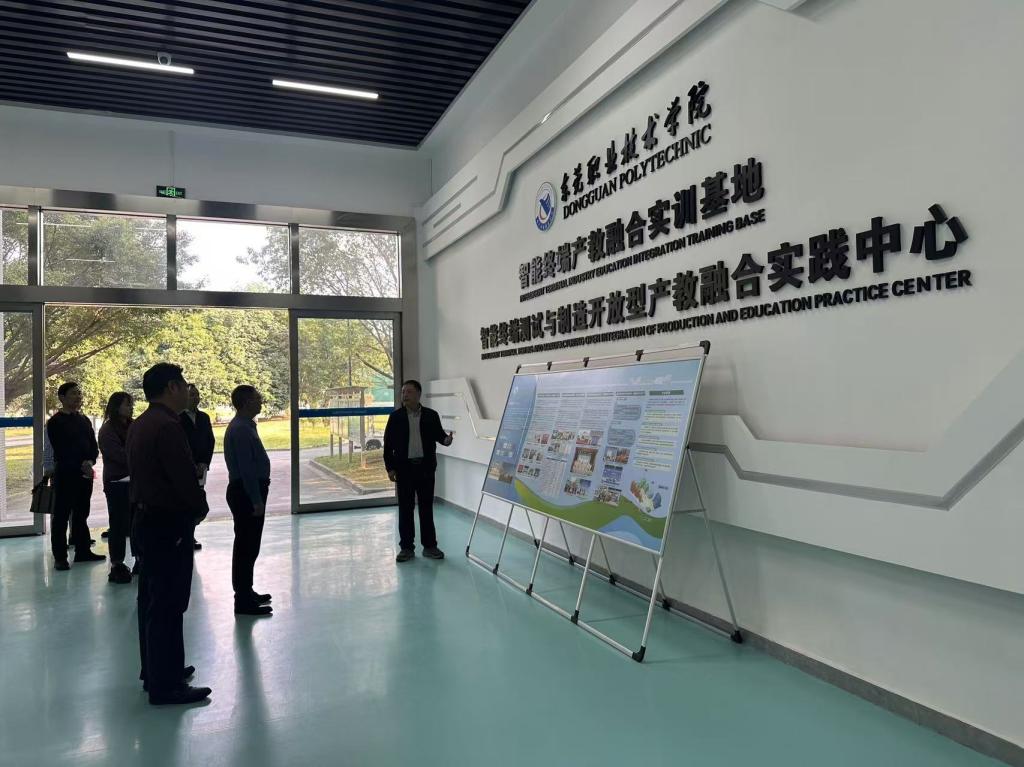 周京波局长一行先后参观了学校智能终端产教融合基地、东莞市机器人技术服务平台、清风园廉政教育基地。在深入了解我校办学发展情况、产教融合基地、机器人技术服务平台后,周京波局长对我校产教融合和机器人平台的建设成果表示赞赏。在清风园走访中,周京波局长表示渡口的红船,象征着教育工作者摆渡人的角色,希望在未来和我校有更多交流合作的机会,共同帮助两地学生更好地成长成才。