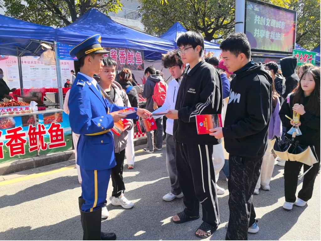 活动通过设立咨询台、摆放宣传展板、发放宣传资料等方式进行,武装部工作人员详细向同学们介绍征兵政策,包括报名条件、应征流程、优惠政策等,并耐心解答同学们提出的疑问。