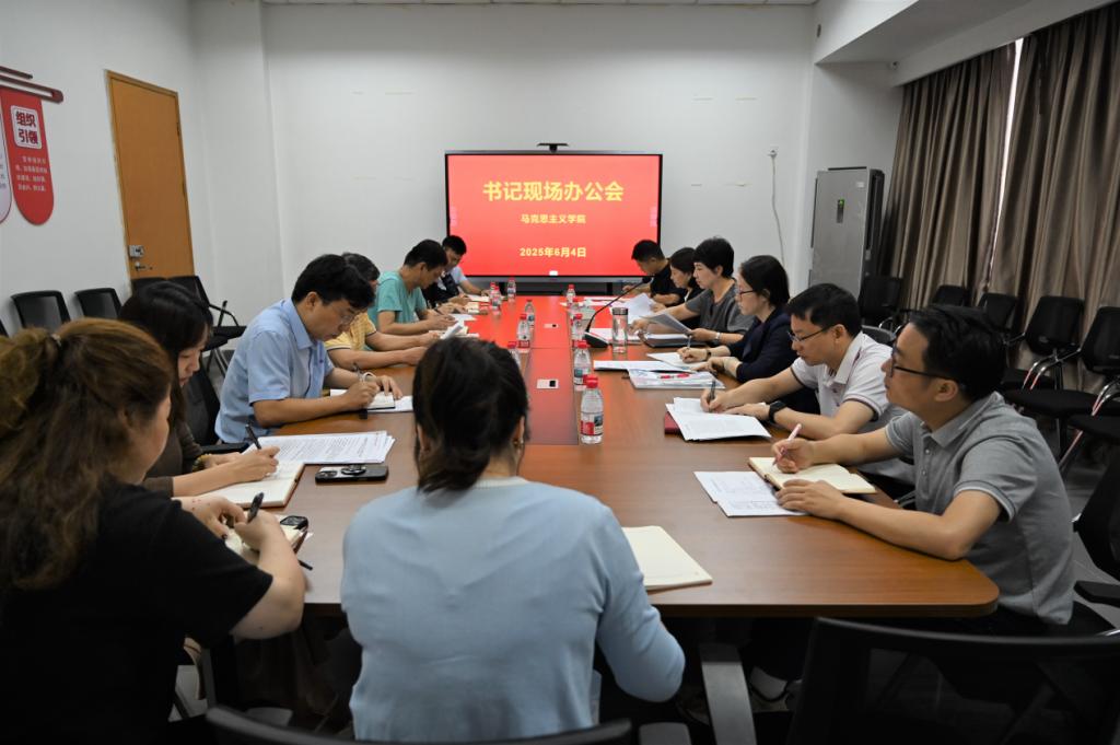 为深入贯彻落实习近平总书记关于高校思政课、马克思主义学院建设的重要指示批示精神,全面贯彻党的教育方针,6月4日上午,书记现场办公会在立德楼B507会议室举行。党委书记司琪出席会议,办公室、教务处、学生处、人事处、科研处等职能部门负责人参加会议。马克思主义学院领导班子成员、党总支委员、教研室主任与会。会议由马克思主义学院院长石文斌主持。