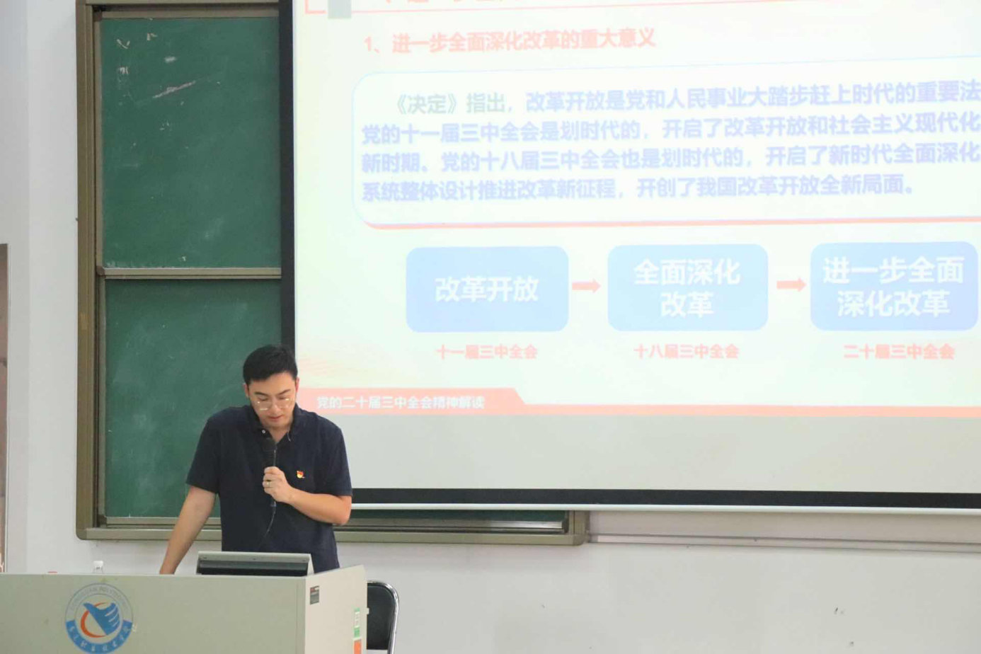 为深入学习贯彻党的二十届三中全会精神,引导广大青年高举改革旗帜。9月27日下午,学前教育与人文学院召开“青春为中国式现代化建设挺膺担当——深入学习贯彻党的二十届三中全会精神”主题班会,此次主题班会由学前教育与人文学院党总支副书记朱跃东主持。